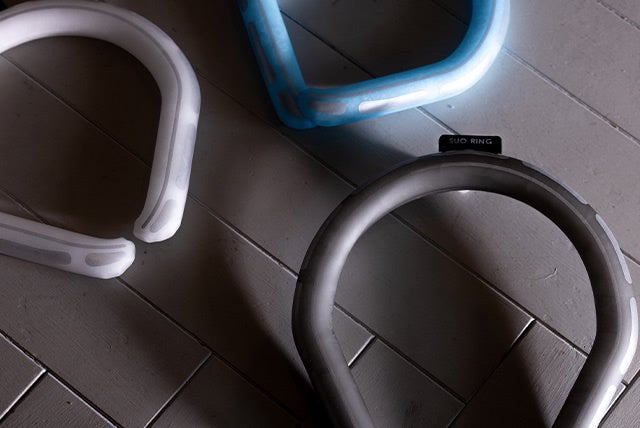 ひんやりクールな SUO リングは植物由来の特殊冷却素材PCM(Phase Change Material:相交換物質)という素材を応用して開発したプロダクトです。