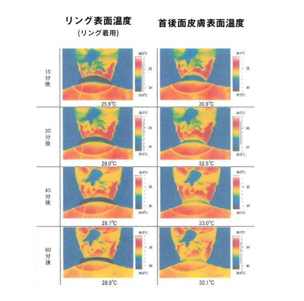 検査機関で当製品を着用した首周りの表面温度を実験いたしました。