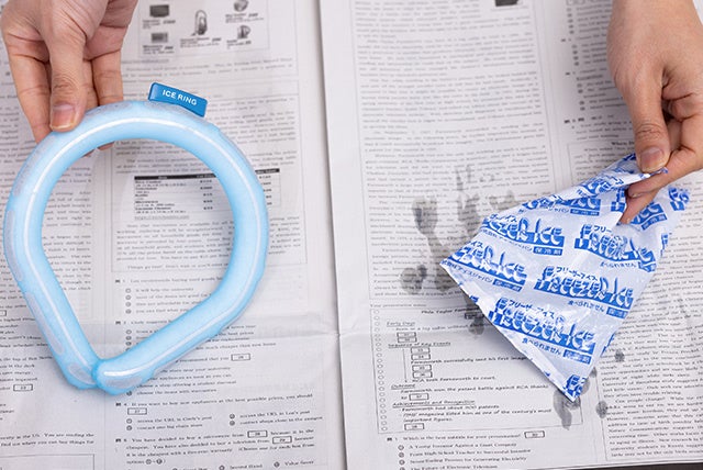 見た目は保冷剤や氷のようですが、氷のように冷やし過ぎて痛みを感じるようなことなく、気持ちの良い快適な冷たさが体験できる製品です。