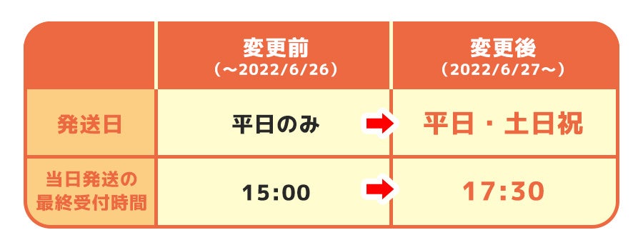 また、当社が運営する他ECサイト店舗については、原則6/30より当日17:00までのご注文を当日発送として同サービス開始いたします。