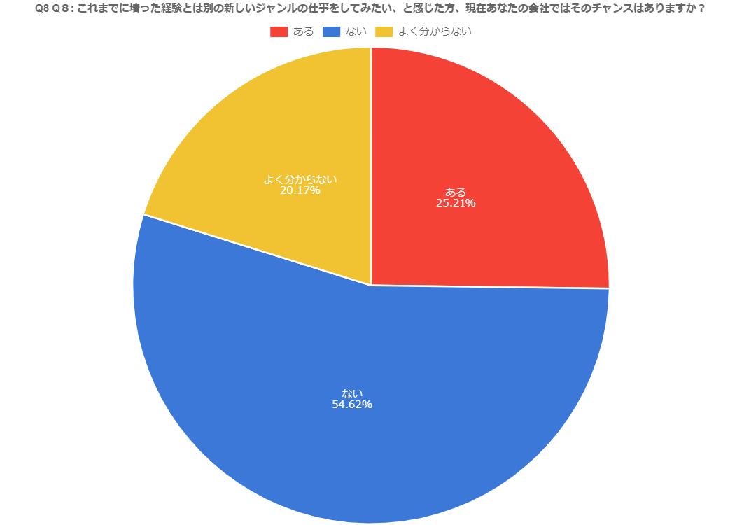 Q.8:これまでに培った経験とは別の新しいジャンルの仕事をしてみたい、と感じた方、現在あなたの会社ではそのチャンスはありますか??(n=119)
