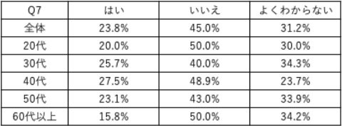 「はい」23.8%、「いいえ」45%、「よくわからない」31.2%