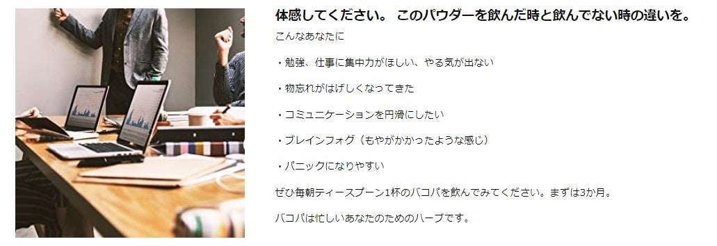 作業効率や認識能力が向上し、コミュニケーションを円滑にする効果にも期待できるバコパは