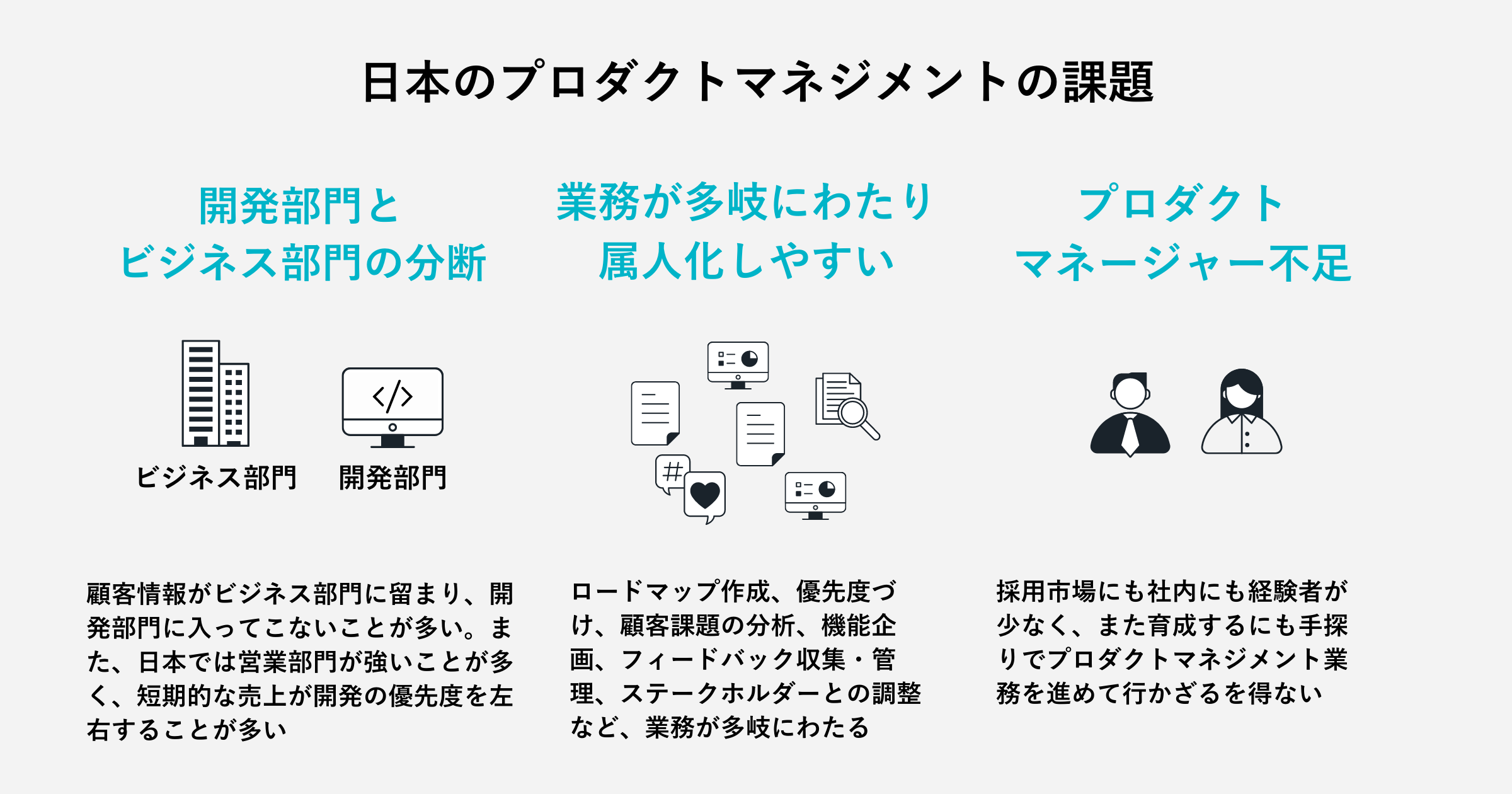 ・採用市場に人材が少なく、経験あるプロダクトマネージャーが慢性的に不足