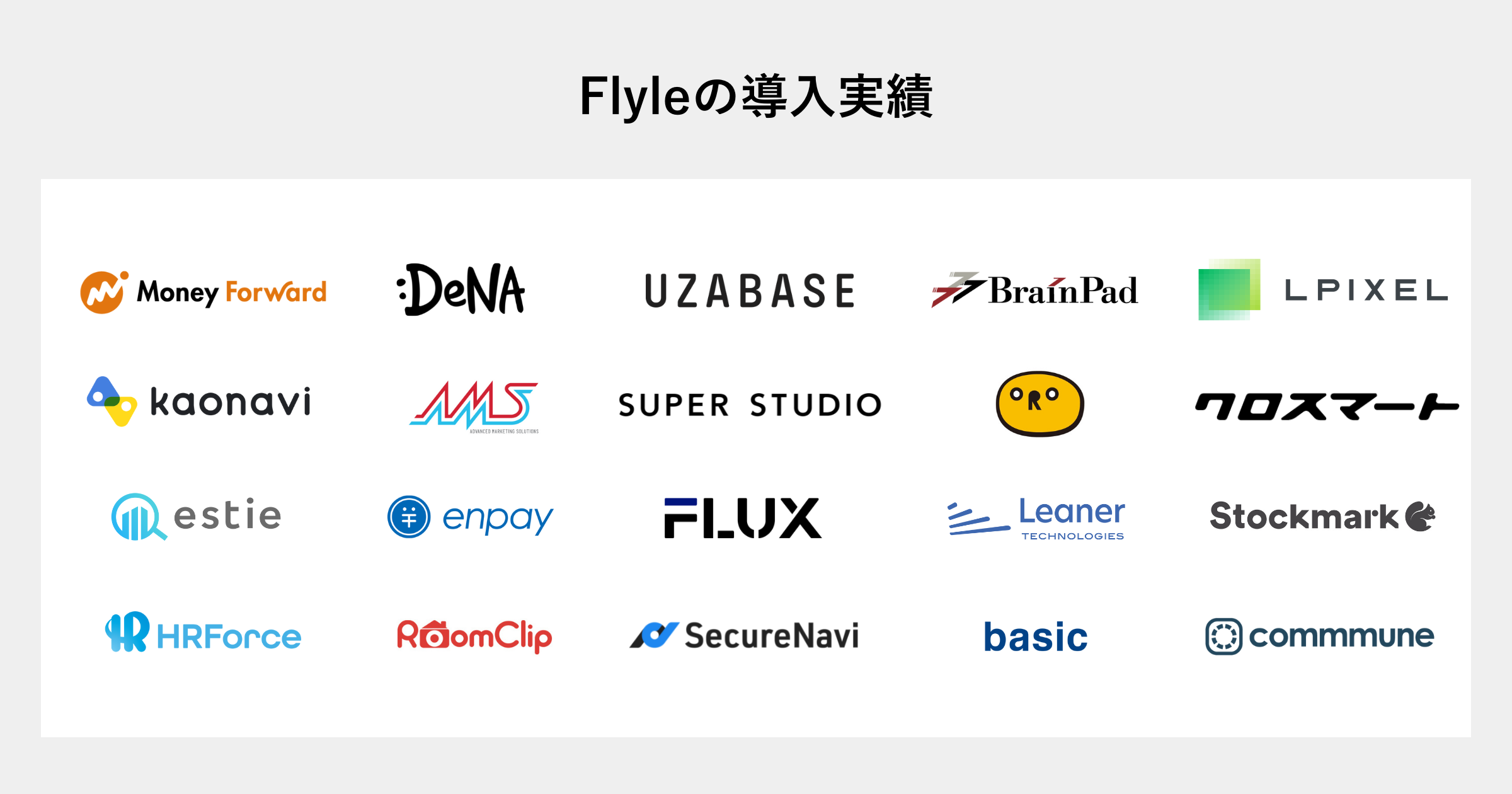 そこでFlyleは、プロダクトマネージャーがより創造的な業務に注力できるよう労働集約的な業務を効率化・自動化するサービスの開発・提供をしています。Flyleは21年6月にプロダクトマネジメントプラットフォームを提供開始。黎明期の業界の中、これまでに大手SaaS企業、大手人材企業、スタートアップをはじめとし100社以上の利用実績があります。