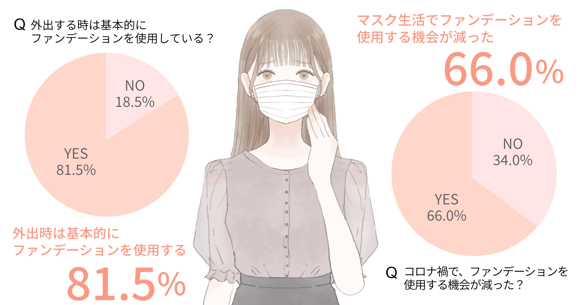 アンケートでは、66%の方が「コロナ禍でファンデーションを使用する機会が減った」と答えています。