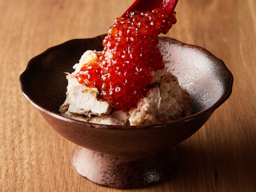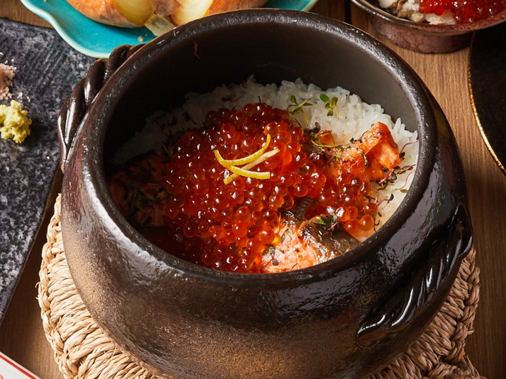 注文を受けてから炊き上げる「鮭といくらの土鍋ご飯」。