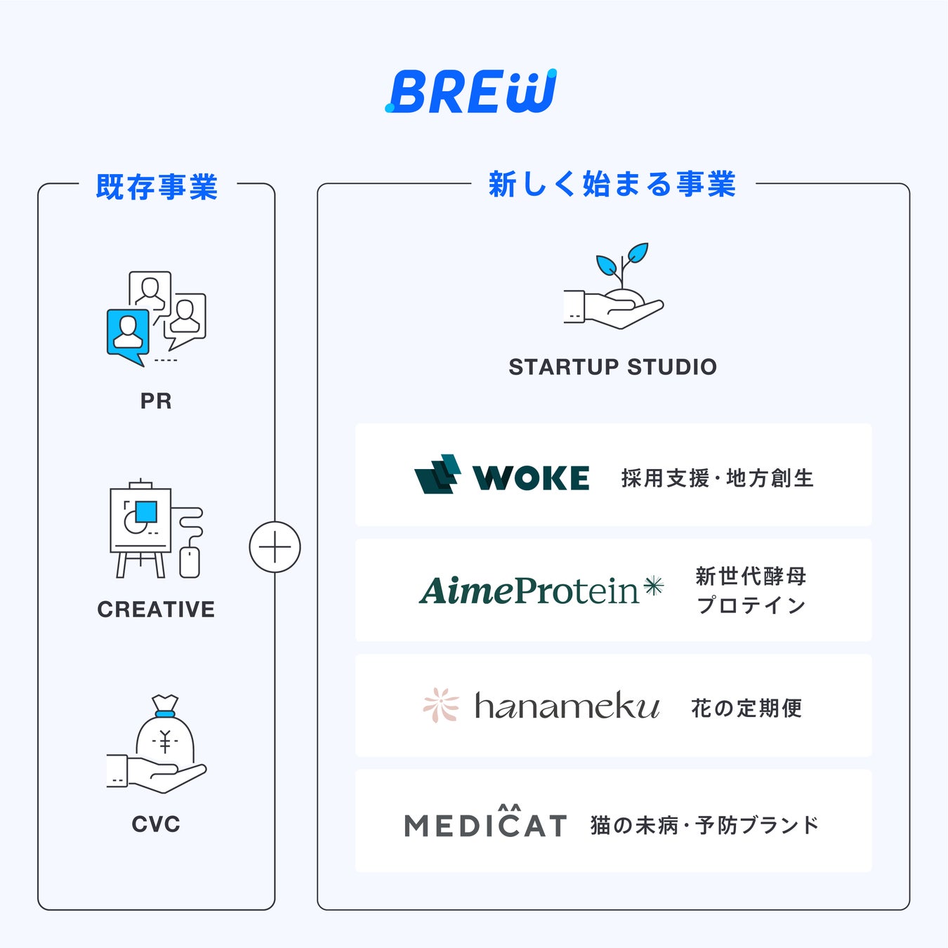 BREWはグループ会社も含め、この4事業にとどまらず、今後も高い事業クリエイティブ力を発揮するスタートアップスタジオとして、何気ない日常が特別なものになるようなプロダクトや事業を継続的に生み出し、圧倒的な成長スピードで人々の新しい未来を“醸成”してまいります。