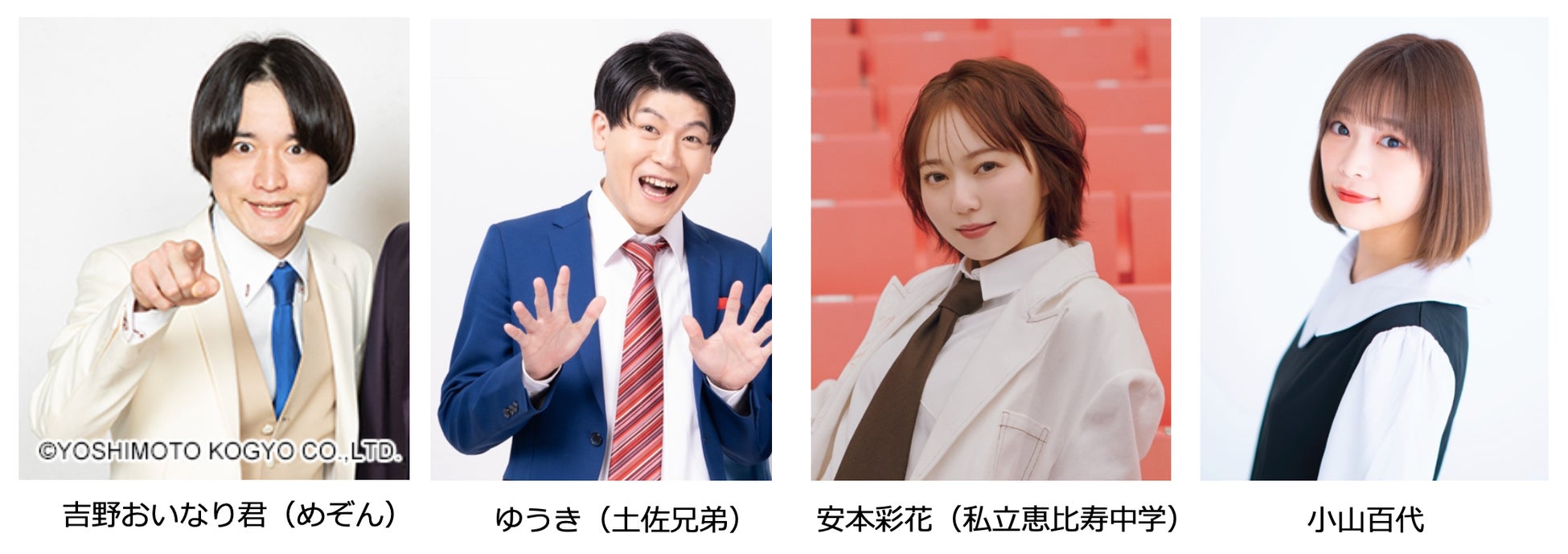 吉野おいなり君(めぞん)、ゆうき(土佐兄弟)、安本彩花(私立恵比寿中学)、小山百代