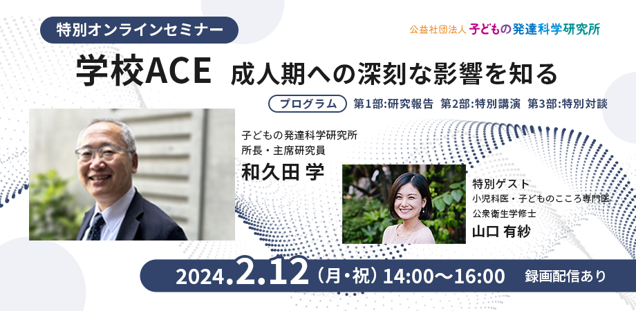 14:05~ 第一部:研究報告 「学校ACEの衝撃 ~研究結果からわかること~」 和久田学