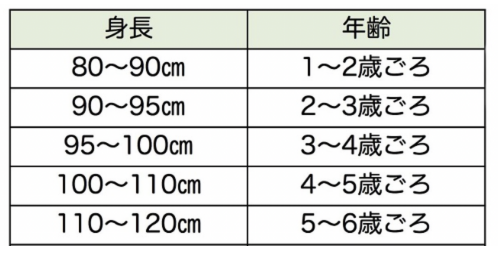 サイズは〜5歳児に併せ、各サイズ(80、90、95、100、110、120の6種類)取り揃えております。