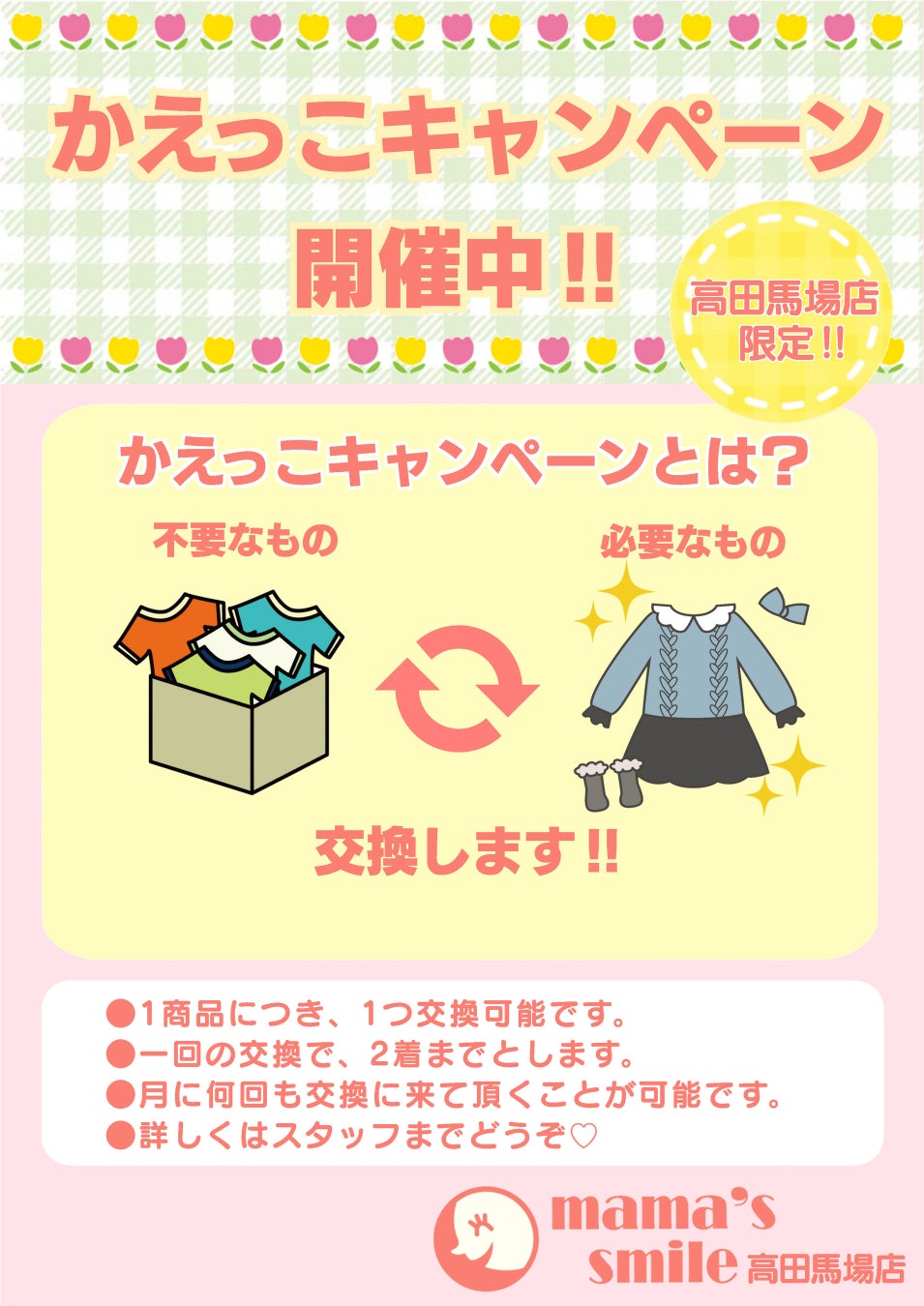 ・交換が不要の方には、ママズスマイル高田馬場店で利用可能な500円クーポンをお渡し致します。(1着につきクーポン1枚となります)
