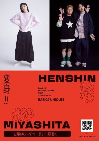 お笑いコンビ ニューヨークとモデルの福士リナさんが華麗に“変身” RAYARD MIYASHITA PARK NEW COLLECTION 「HENSHIN MIYASHITA」4/22(金)より開催