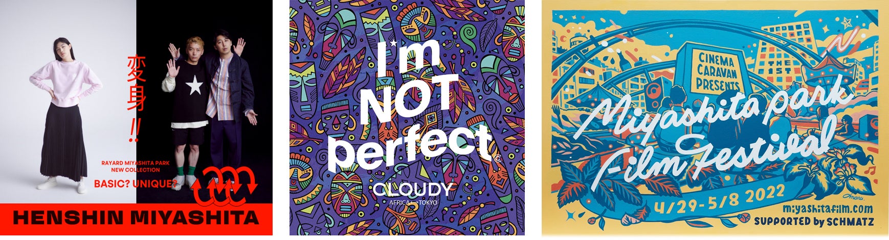 「HENSHIN MIYASHITA」の期間中、「CLOUDY」では「不完全」なイベント「I’m NOT perfect」を開催。また、4⽉29⽇(⾦・祝)〜5⽉8⽇(⽇)のゴールデンウイーク期間は、MIYASHITA PARK屋上の渋谷区立宮下公園 芝生ひろばにて「第1回MIYASHITA PARK FILM FESTIVAL」を開催いたしますので、是非こちらもご注目ください。