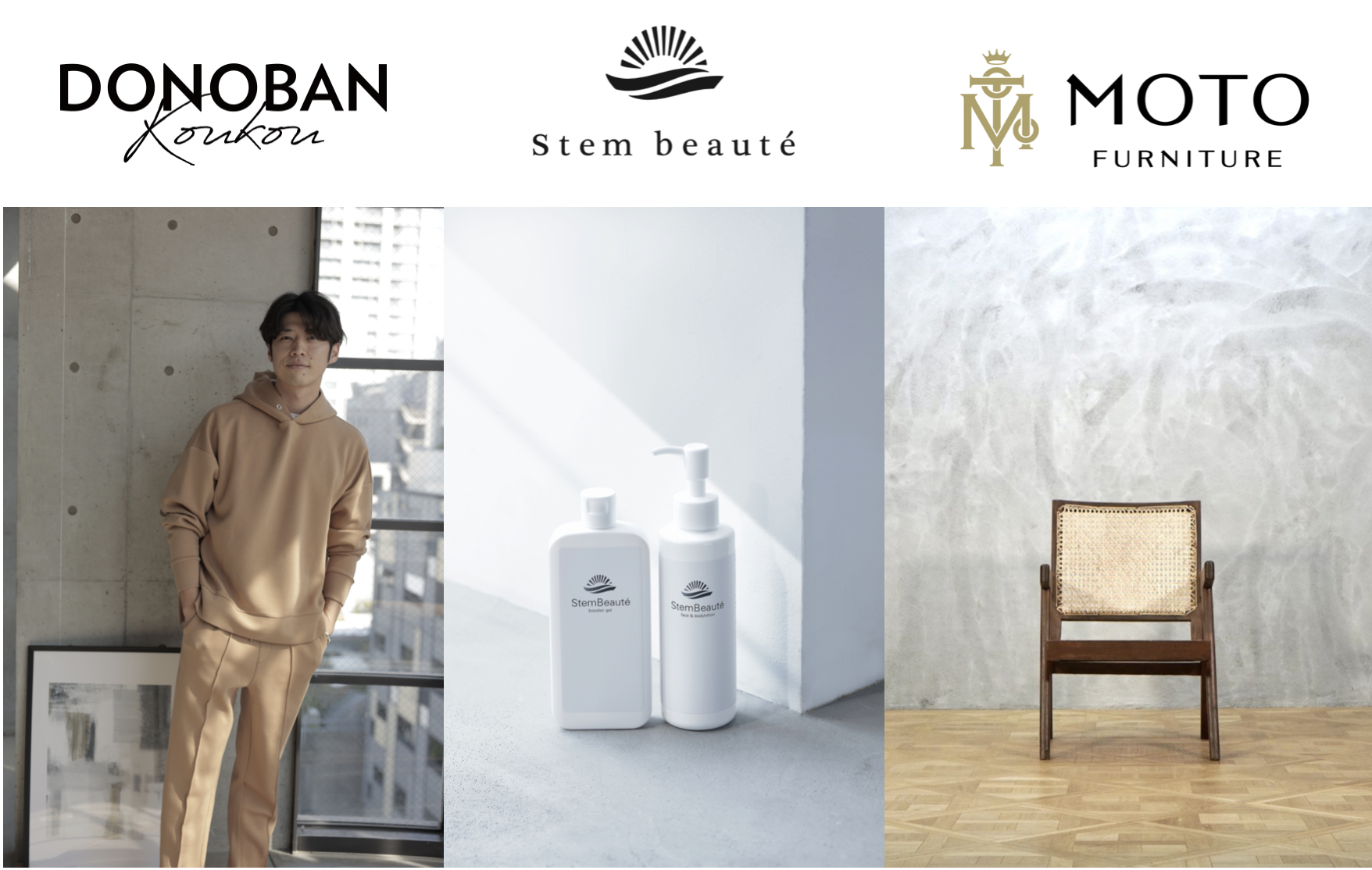 MIRROR FIT.の他、お家で過ごす休日やスポーツウェアとしても活躍する黄皓×DONOBANコラボレーションのワンマイルウェア「KOKOCHI」に、黄皓愛用の、ヒト幹細胞コスメのパイオニアとして次世代のスキンアケアを提案する「ステムボーテ」、希少価値の高いヴィンテージ家具・雑貨を取り揃える「MOTO FURNITURE」の家具が店頭に並び、心も身体も健康で美しくいるためのライフスタイルを提案していきます。