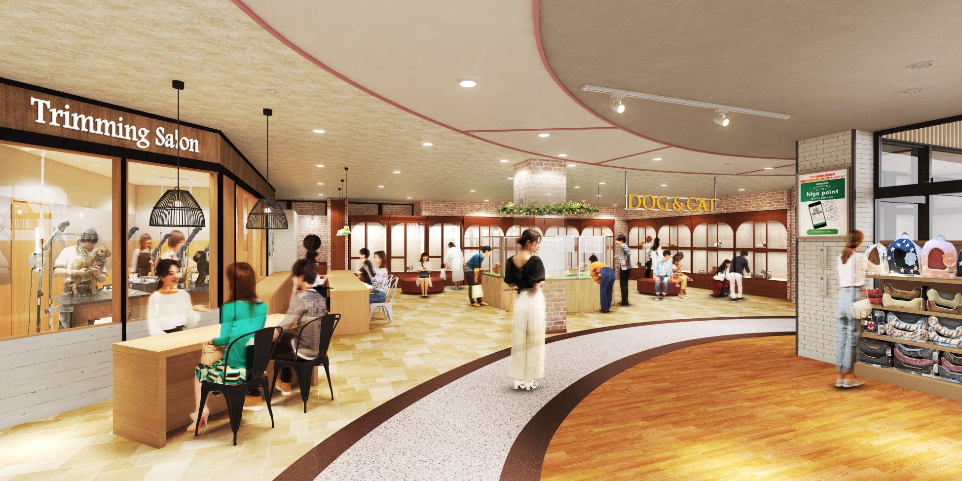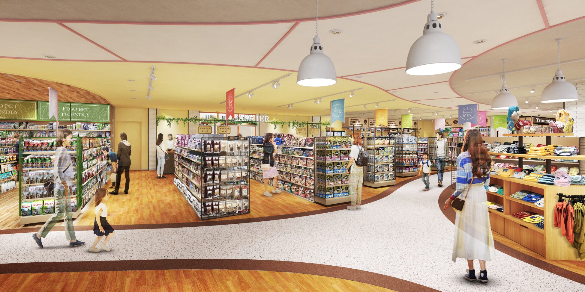 約252坪の店内は、ペットと一緒に楽しくお買い回りできる街の商店街をイメージ。