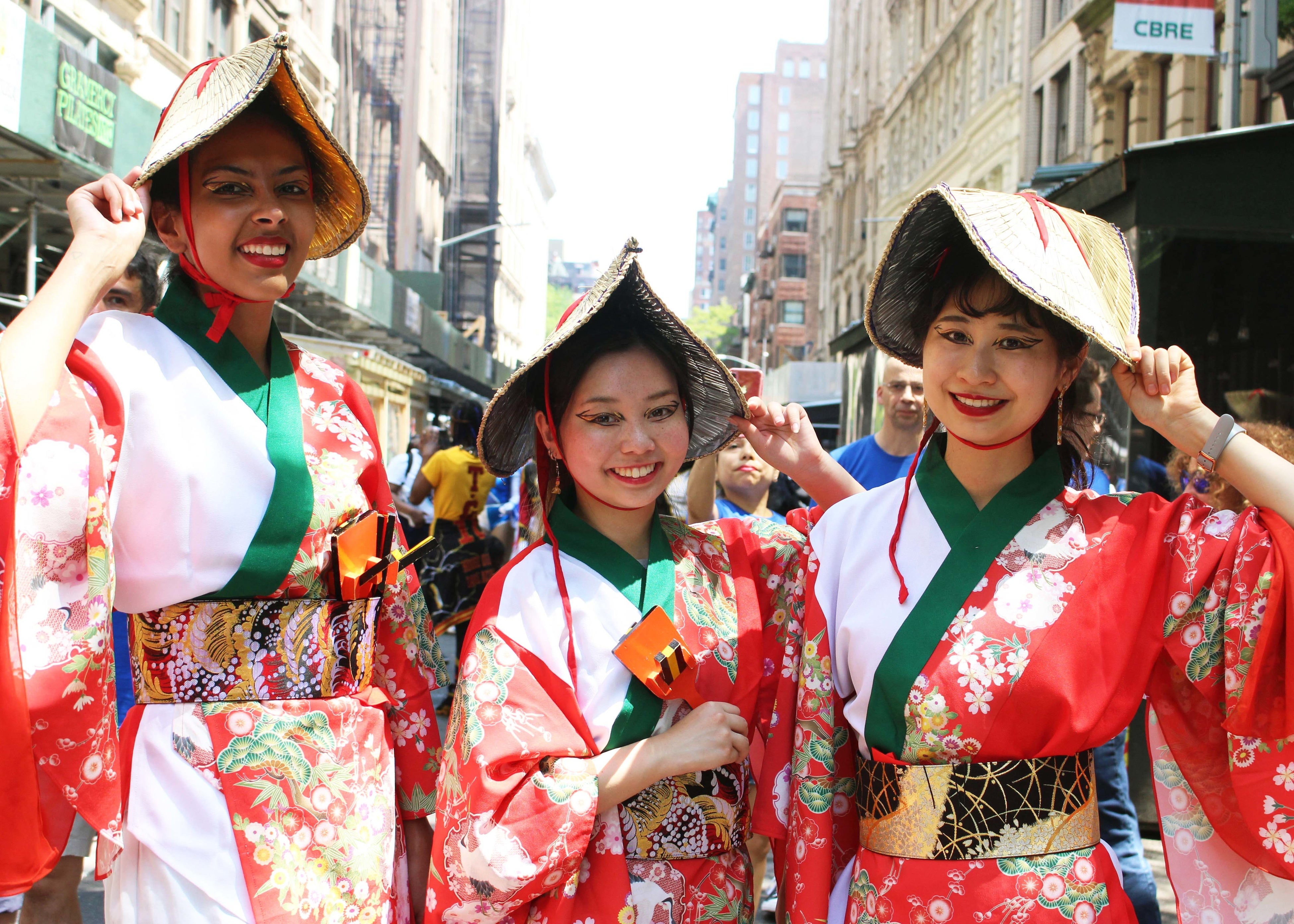 コロナ時代になってから、ストリートで3年ぶりの開催となった本年のパレード。Aya Iwakamiと紅玉のコラボには、様々な人種が集うニューヨークで日本の美しさを力強く表現することによって、アジアンヘイトやそれに付随するクライムを少しでも減らせるようにという願いが込められた。