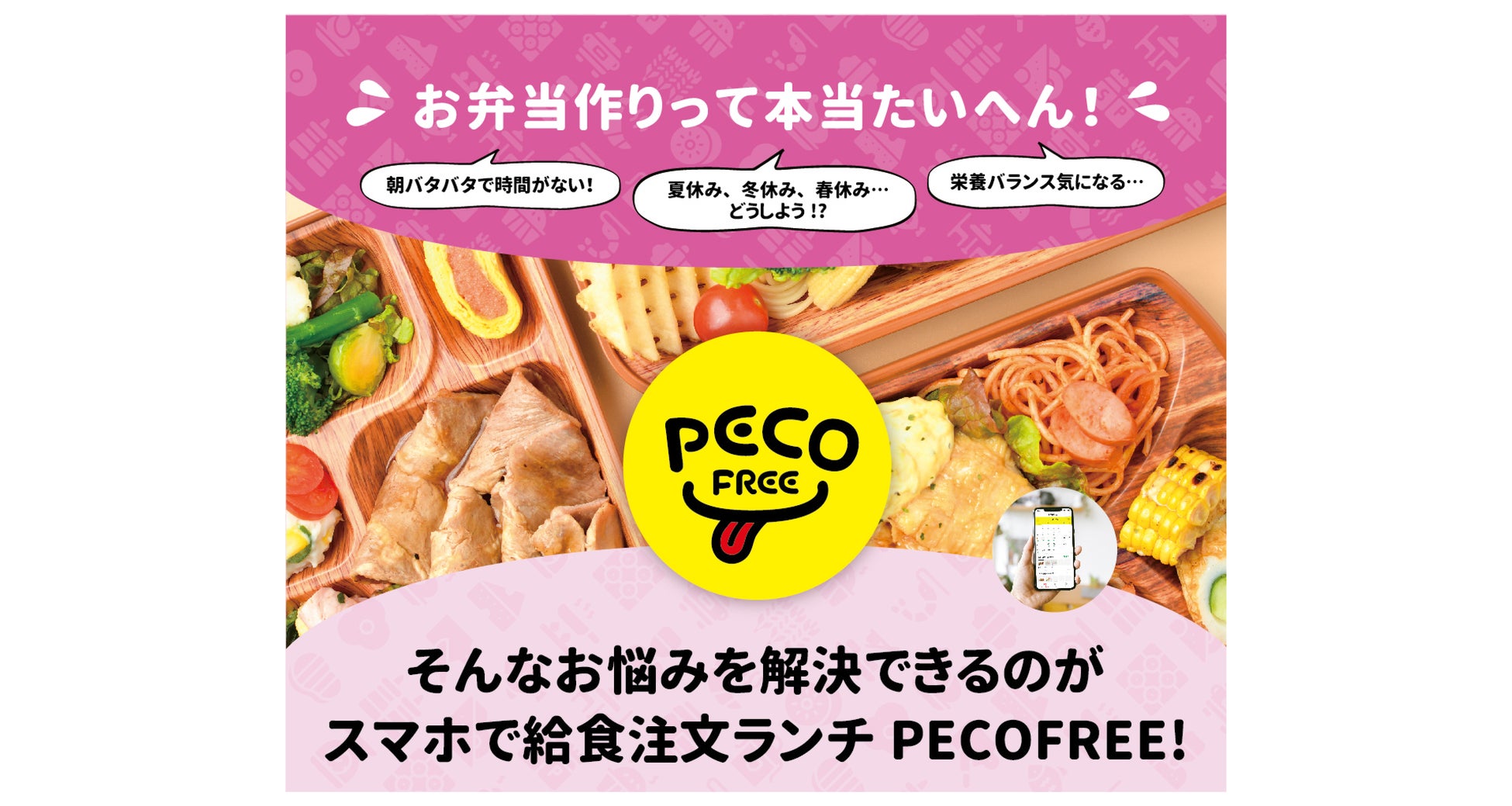 株式会社PECOFREE(本社:福岡県福岡市、代表取締役:川浪 達雄)は、株式会社テノ.サポート(本社:福岡県福岡市、代表取締役:池内 比呂子)が運営する福岡県下4市町(春日市、那珂川市、太宰府市、新宮町)の48の学童保育所でお弁当をスマートフォンで予約注文できるサービス「PECOFREE(ペコフリー)」を2022年7月より開始いたしました。