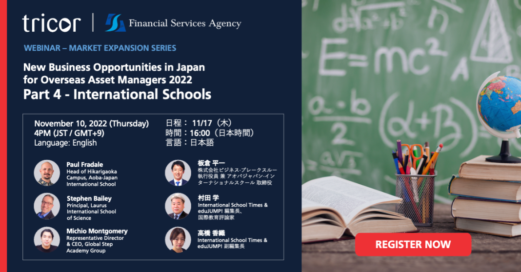 金融庁と企業の海外進出をサポートしているトライコー・ジャパンは、11/10(木)、11/17(木)、国内インターナショナルスクールとボーディングスクールを徹底解説するオンラインセミナーを開催します。eduJUMP!編集部も、ゲストスピーカーとして登壇が決定しました。
