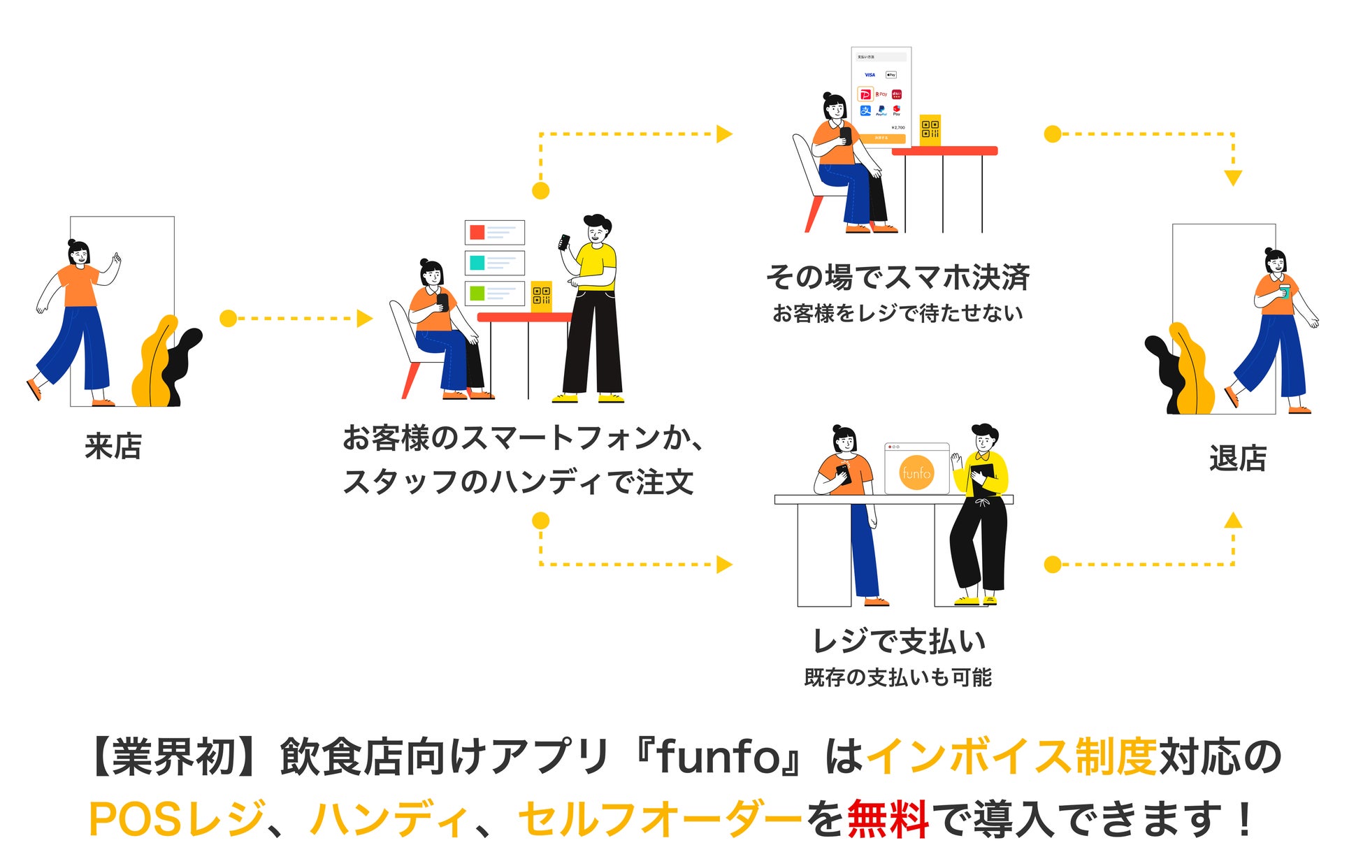【業界初】飲食店向けアプリ『funfo』はインボイス制度対応のPOSレジ、ハンディ、セルフオーダーを無料で導入できます!
