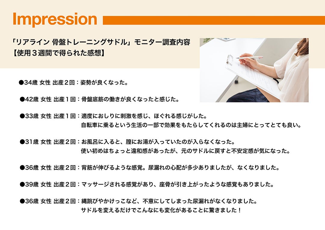 骨盤の歪みや体型の崩れで悩んでいる方が多い出産経験のあるママさんを対象に3週間のモニター調査を行いました。※感想は個人の主観であり、効果を保証するものでありません。子育てと仕事を両立しながら、毎日忙しく動き回る「子育てママ」にとって一日はあっという間です。いつまでも綺麗に、体型には気を使いたいけどジムや整体に通っている時間がない!そんなママには「移動時間で骨盤ケア」ができるぴったりの商品です。