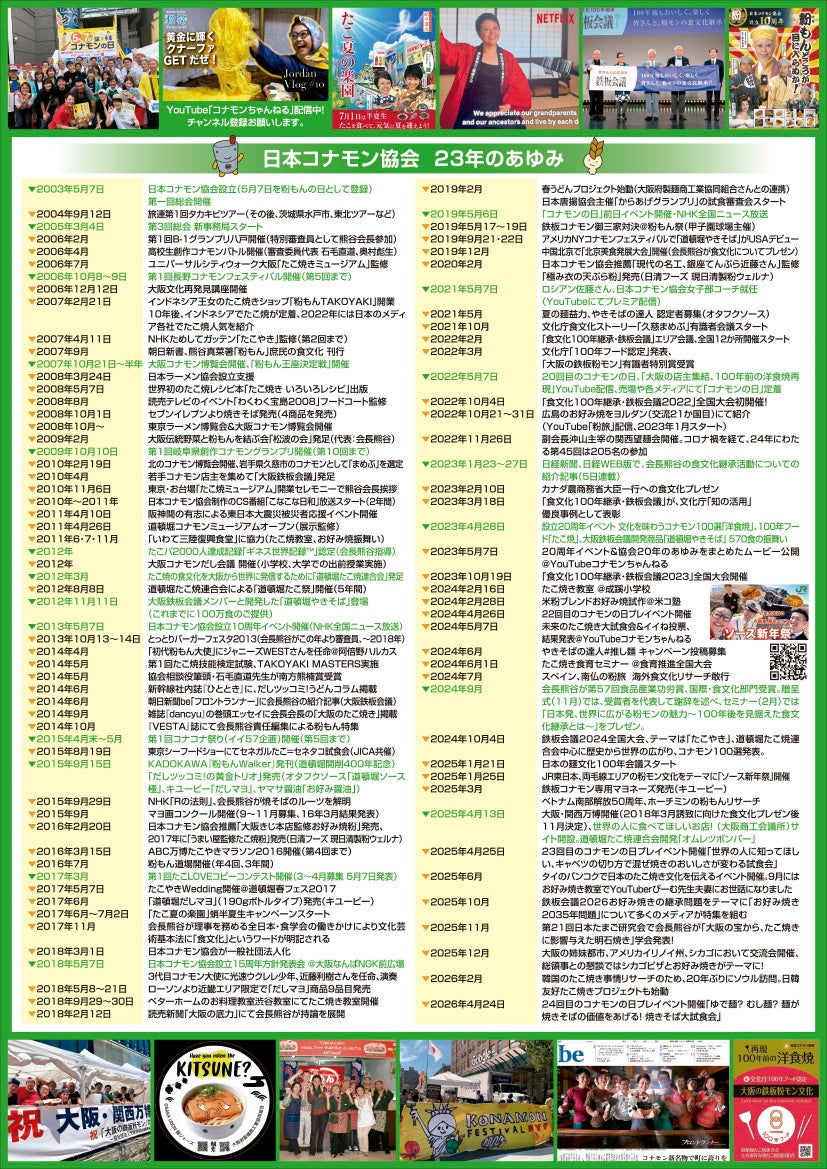 日本コナモン協会(大阪市中央区)は、食文化普及、継承を目的に2003年5月7日コナモンの日に