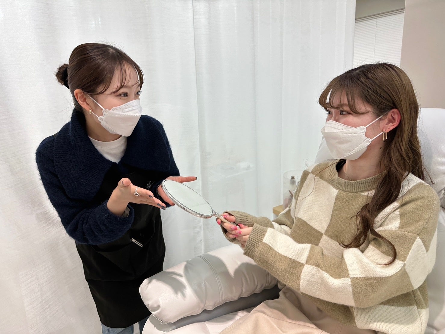 美容師と違うところは、1人のお客様に対してすべての工程を1人のスタッフが対応するところ。1時間、長い時は2時間ほど接し続けるので終わったときの「ありがとう」が一層うれしく、アイリストのやりがいを感じています。