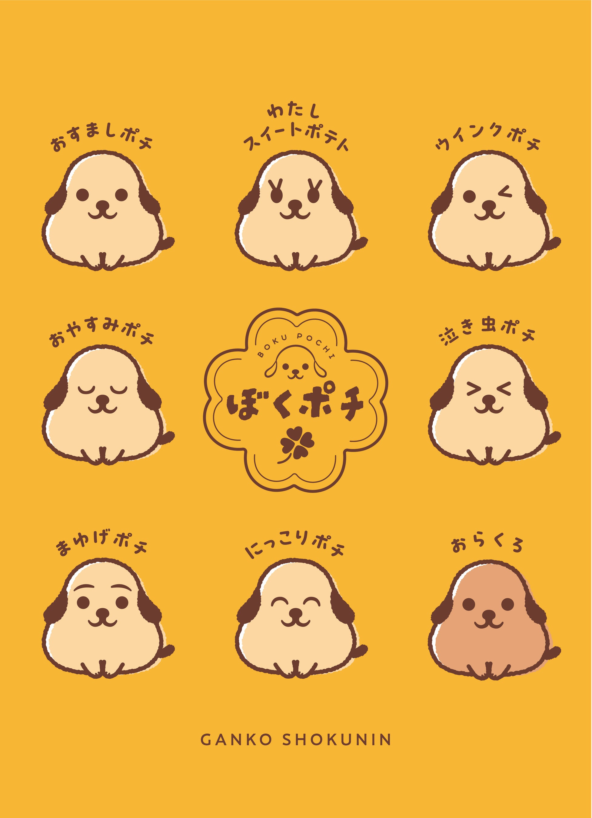 ポチは5種の表情「おすましポチ」「にっこりポチ」「おやすみポチ」「泣き虫ポチ」「ウインクポチ」