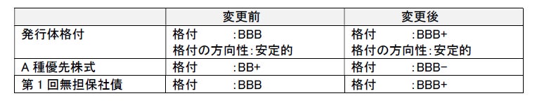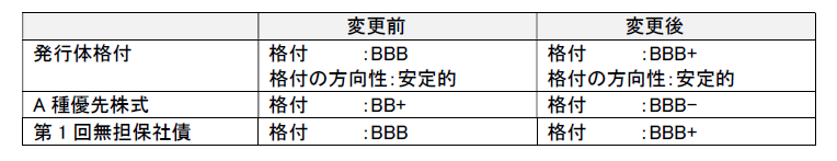 格付対象:発行体格付、A 種優先株式、第 1 回無担保社債