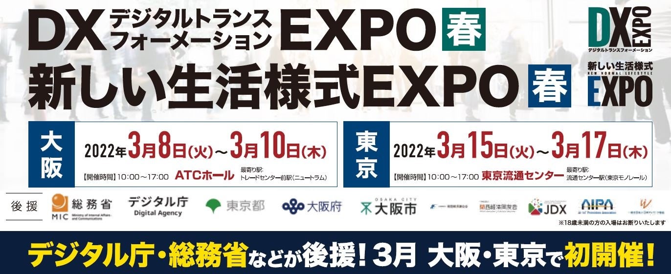 3月に大阪・東京で開催の『DX-デジタルトランスフォーメーション- EXPO』『新しい生活様式 EXPO』では、業界トップによるDX・働き方改革セミナーが多数開催されるほか、計670の最新ソリューションが出展いたします。来場事前登録により様々な特典がございますので、ご登録の上、ぜひご来場ください。