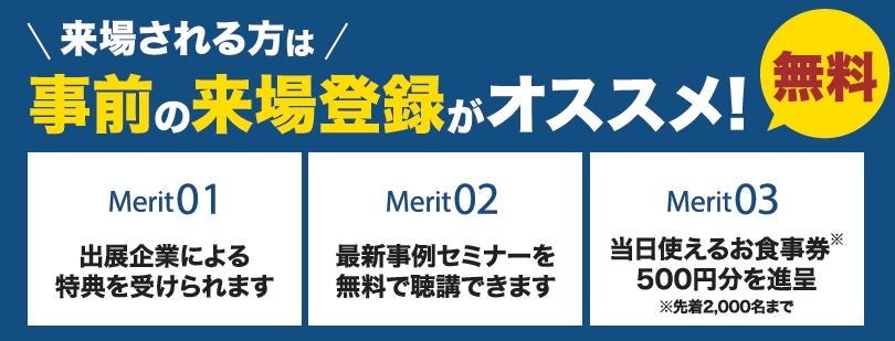 - 来場事前登録で様々な特典あり!ぜひ登録の上、ご来場ください