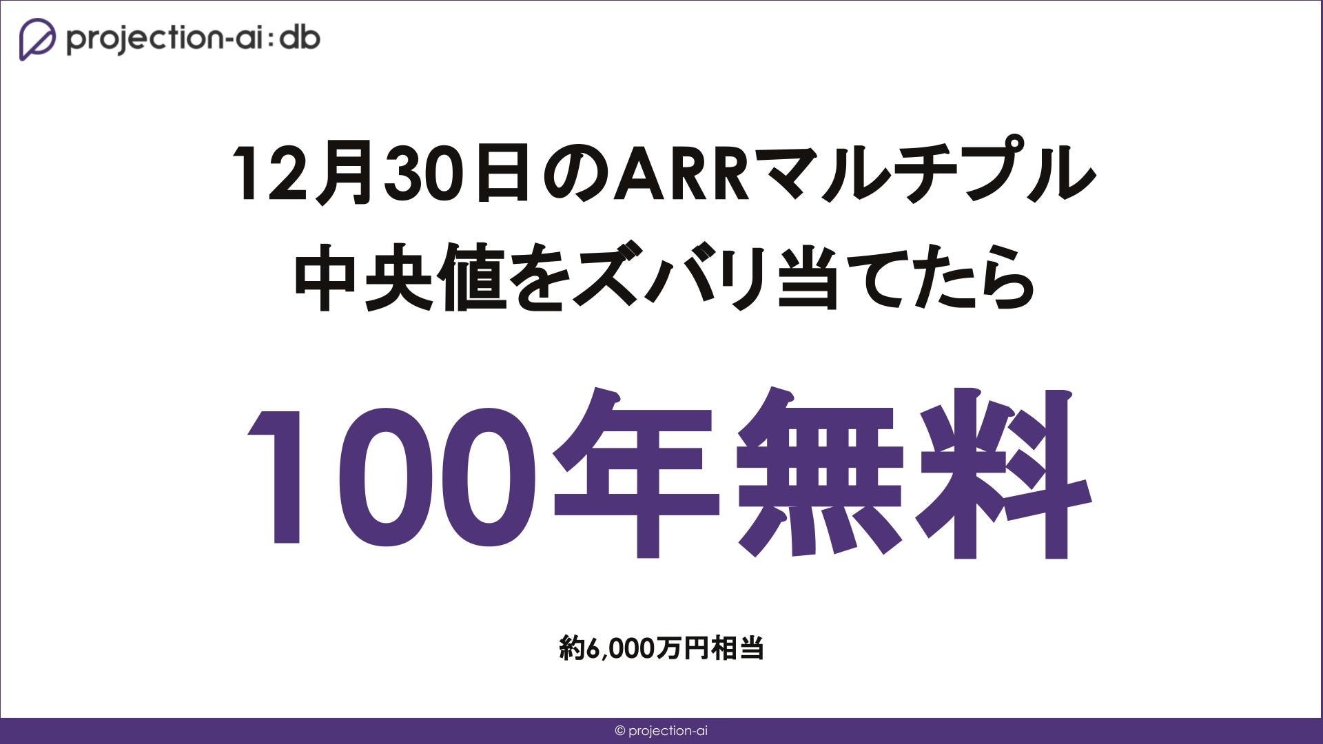- 大納会12月30日(木)のARRマルチプル中央値を的中させて「projection-ai:db」が100年無料に!