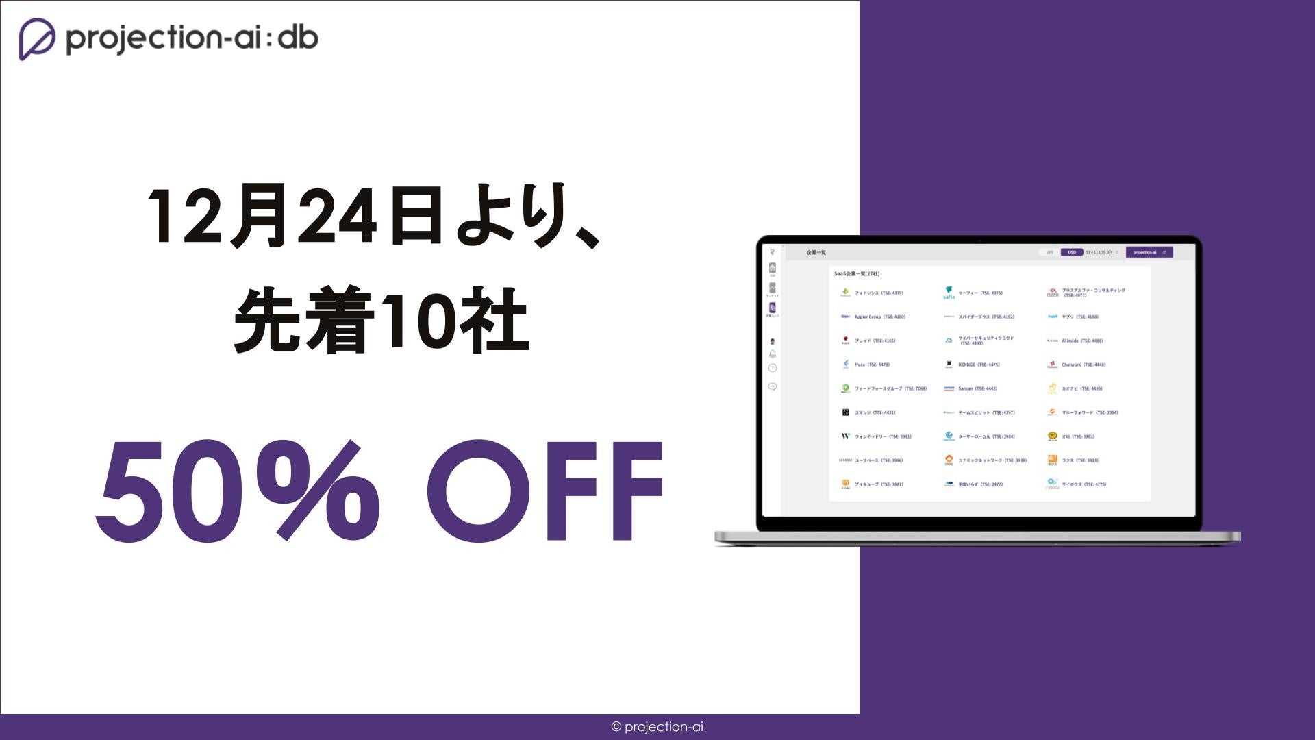 - 12月24日(金)より「projection-ai:db」を先着10社に50%オフの特別割引プランで提供!