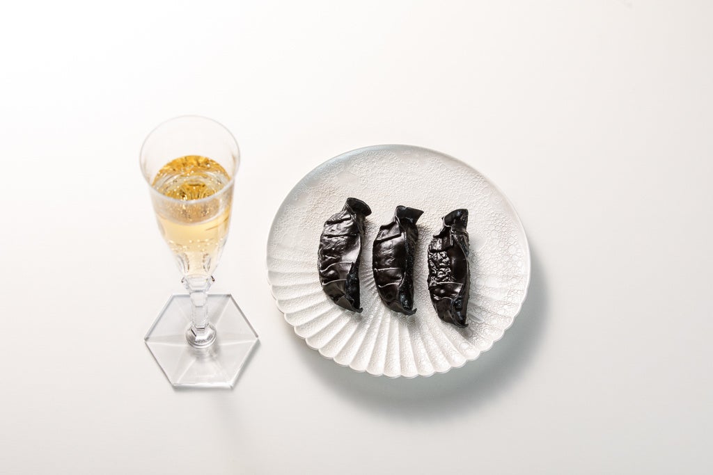 巻紙の両端から覗く真っ黒な餃子も、インパクト間違いなし!
