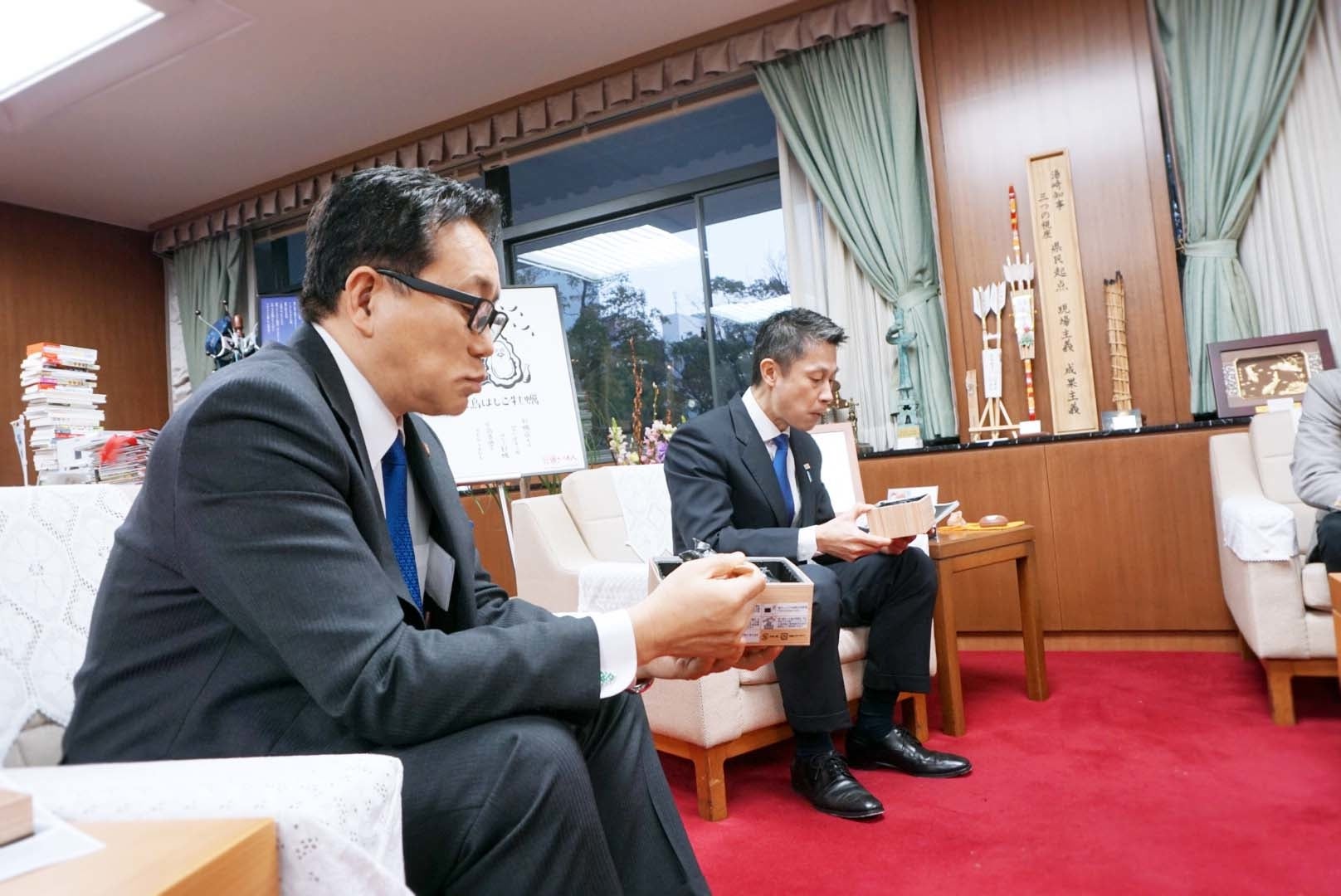 広島県知事 湯﨑英彦氏に『特選広島牡蠣黒餃子』をご試食いただく機会がありました。