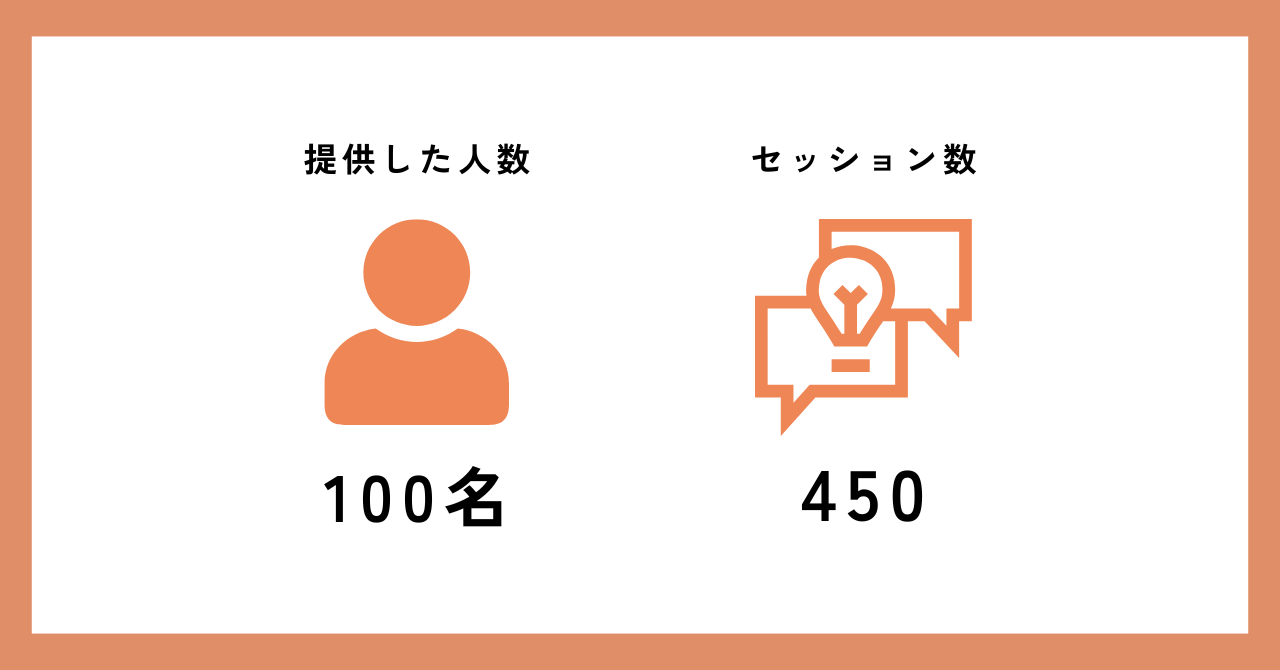 弊サービスは、サービス開始の2022年10月から、現在までで、約1年半で100名の社会起業家へ、約450のセッションを実施してきました。