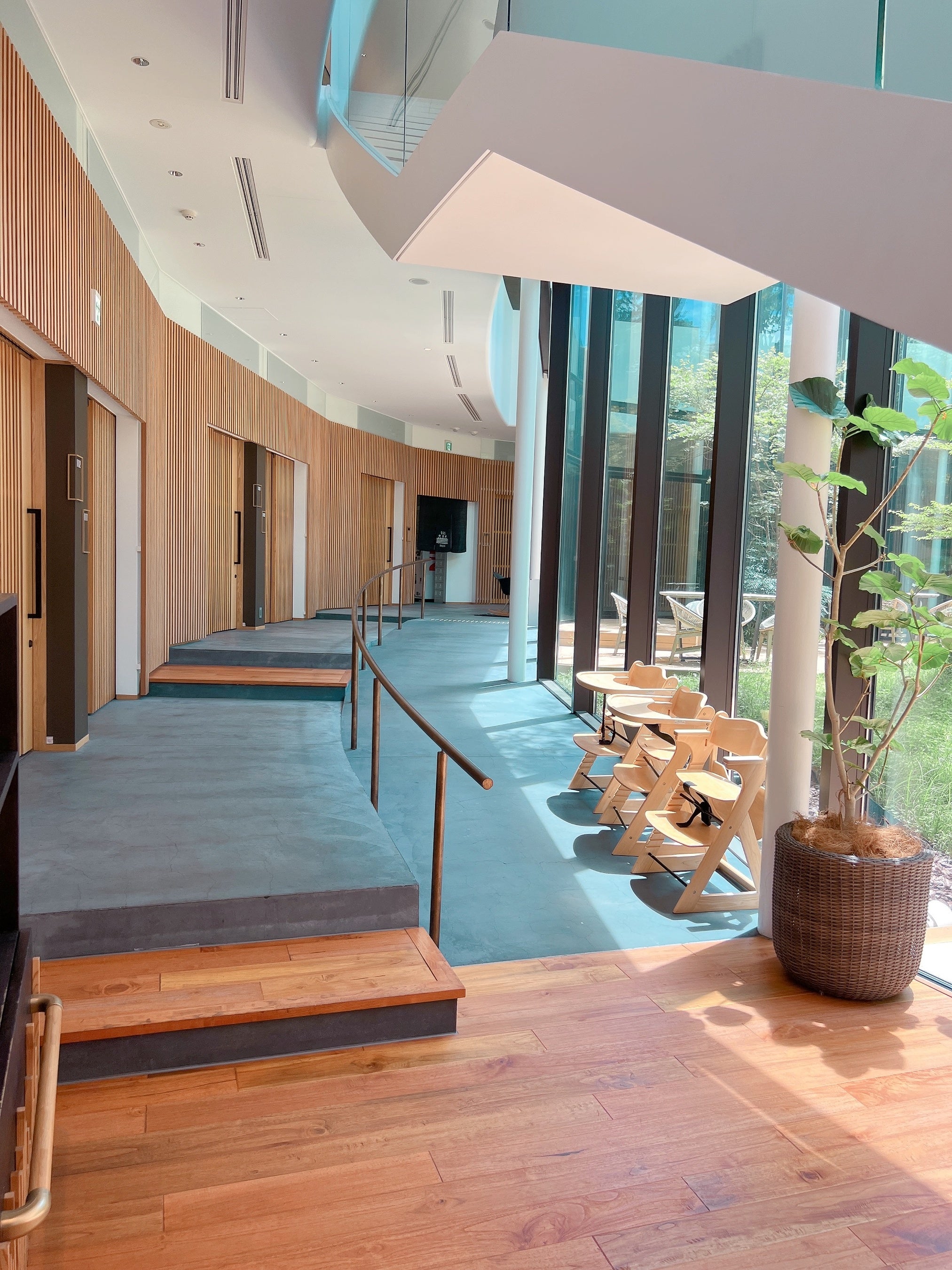 建物のどこにいてもリラックスできること、 自然環境の変化を感じられること、歩き回りながら考える脳を刺激する回廊が創られていることなど、上質な滞在が叶うよう考え抜かれています。
