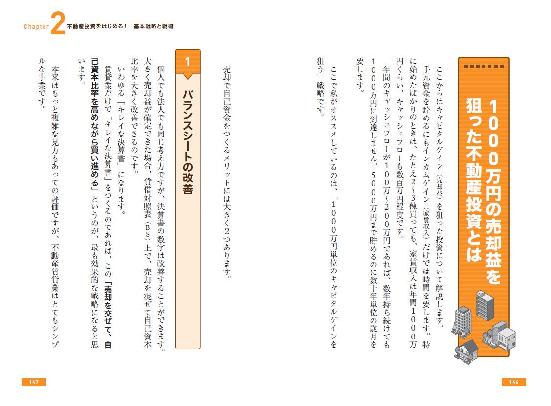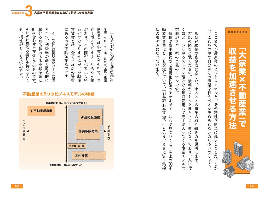 本書は352ページというボリュームの中に、不動産投資の基本から始まり、不動産業の始め方とノウハウ、さらに超安定大家となる出口戦略までまとめ、平易な言葉と適切な図版を用いてわかりやすく解説、不動産投資の経験がゼロの初心者でも理解し始めることができます。