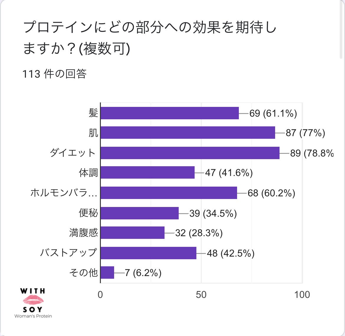 美容専用ソイプロテインを具体的に「どのような目的で利用しているのか」また「実際に感じた効果」を明らかにするためのアンケート調査を実施しました。