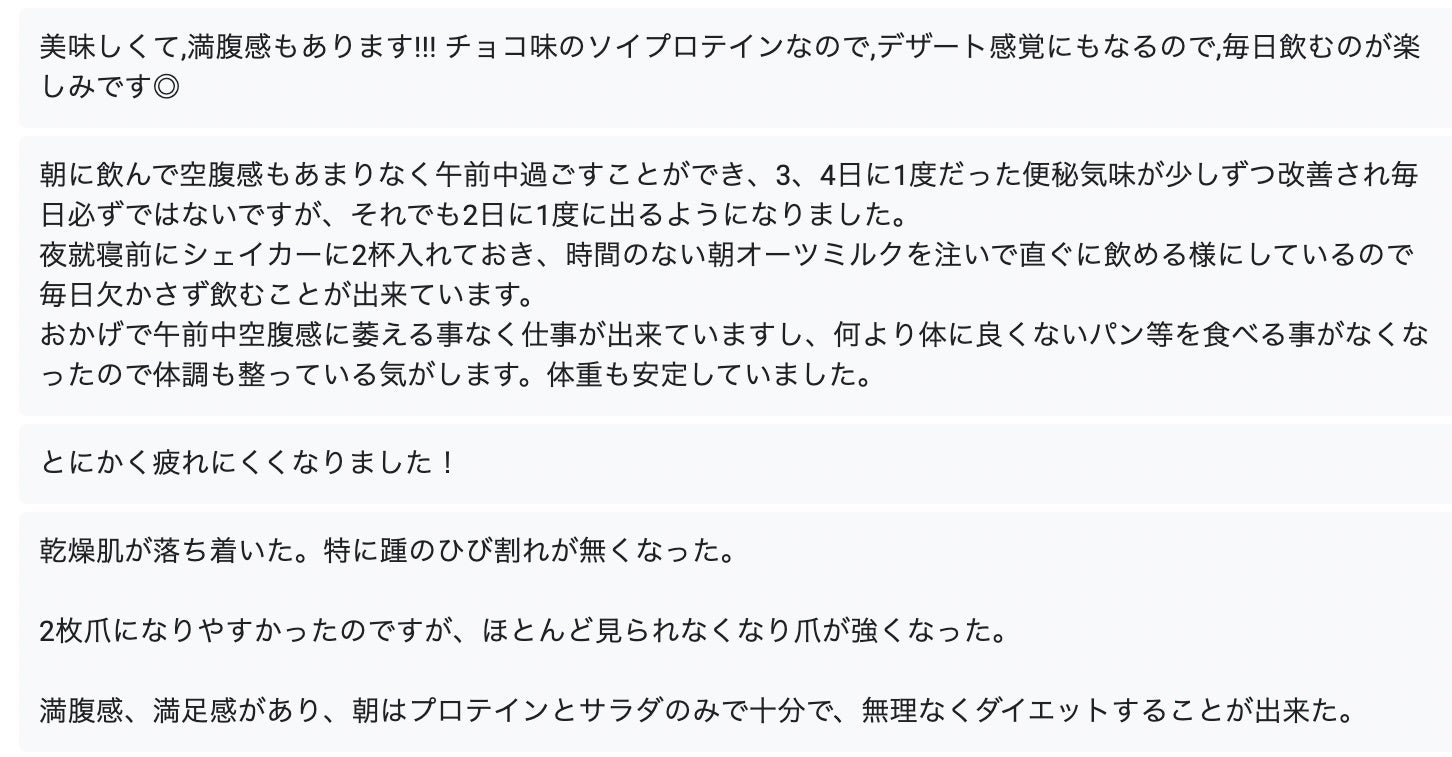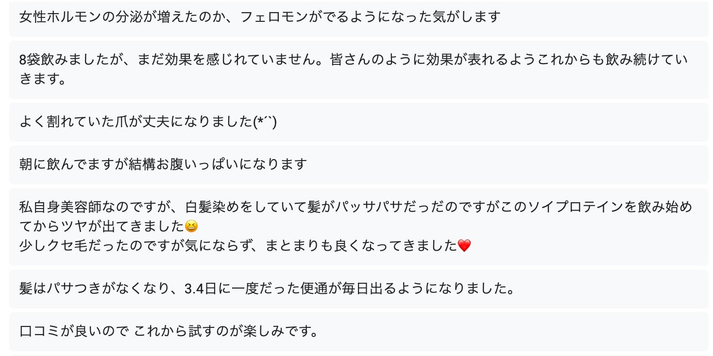 【ご愛飲者さまアンケート】脚やせYoutuberが開発!忙しい女性のための美容専用ソイプロテイン