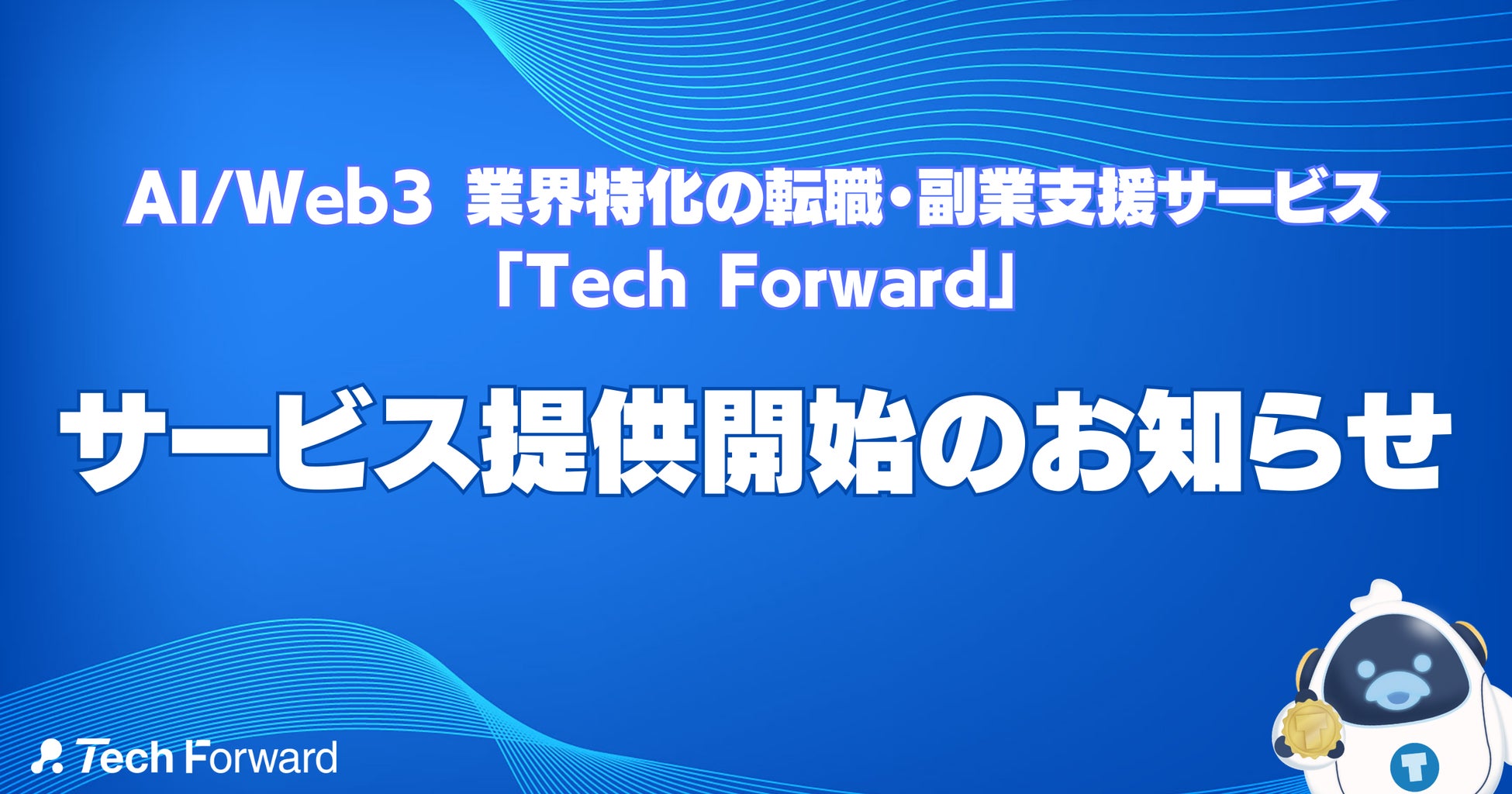 AI / Web3 業界特化の転職・副業⽀援サービス「Tech Forward」は、「新しいミライ」を創る企業と⼈材を繋ぐサービスとして、AI⼈材やWeb3⼈材を必要とする企業様や、新しいチャレンジをしたい先端テクノロジー人材の方に向け、求⼈情報掲載サービスや副業紹介サービスの提供を⾏うものです。
