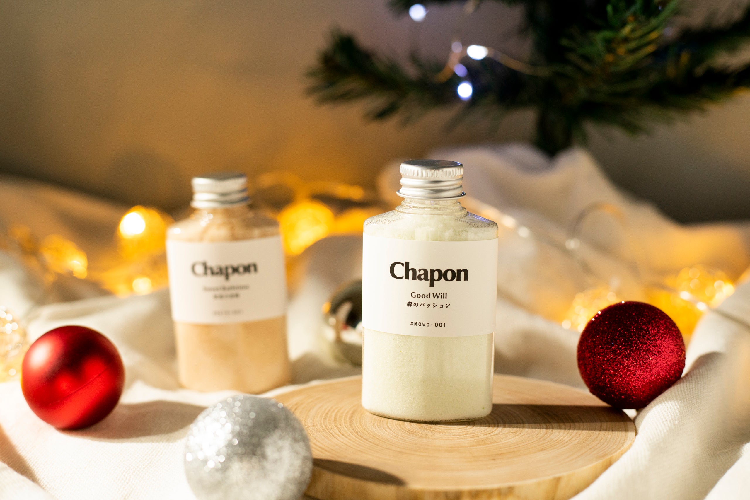 Chaponは「家族のクタクタ疲れを、一気に癒やしたい。」という当事者の想いから生まれた、身体の疲れや睡眠の質などの暮らしの悩みに寄り添ったオンライン販売の高級入浴剤ブランド。「週に一度の、ちょっとした贅沢。」というブランドコンセプトのもと、"疲れた心が笑顔に変わる体験" を追求し日々をもっと自分らしく過ごせるライフスタイルを提案しています。バスソルト初グッドデザイン賞受賞、Amazon・楽天 部門ランキング1位獲得。癒やしの香りに包み込まれて "ぽかぽかとろける新入浴体験" が話題。