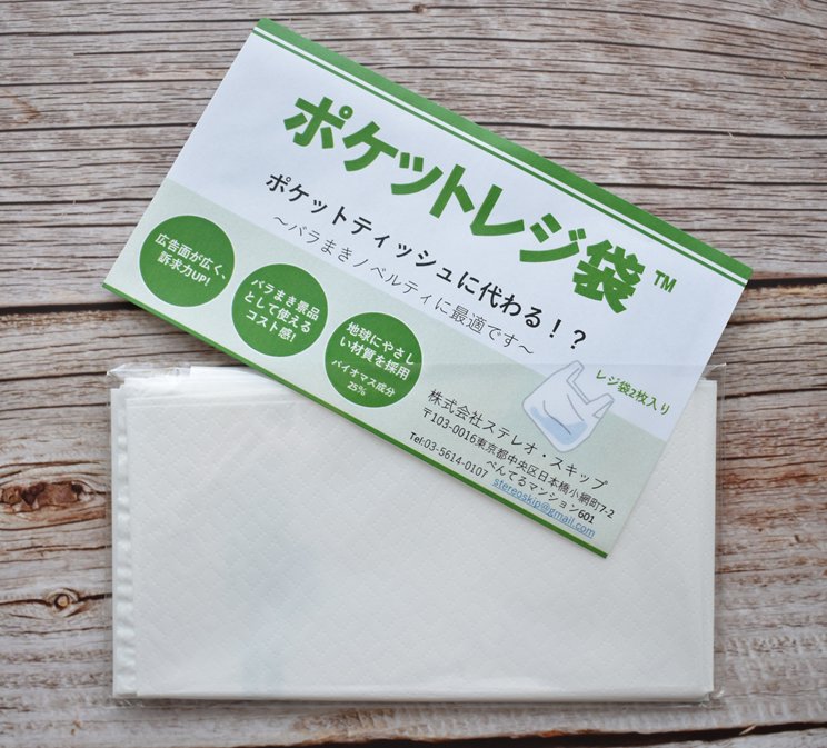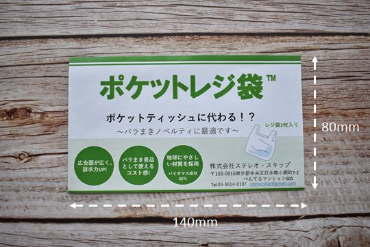 ポケットティッシュに代わる新しいばらまきノベルティとして益々注目の「ポケットレジ袋」、只今新規クライアント様大募集中です!