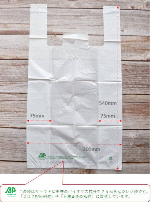 ●ポケットレジ袋は、植物由来プラスチックが25%入っているので、レジ袋有料化の対象外となる条件を満たし、石油資源の節約とCO2削減に貢献しています。
