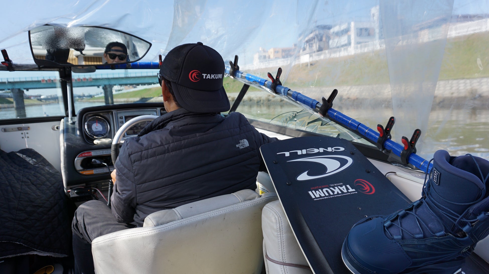 ウェイクボードにおけるトーイングボートの役割は重大だ。ただ単にプレイヤーを引っ張るだけではなく、右に左に旋回することにより”曳き波”を発生させる。操船者はスピードと旋回角を調整することで、プレイヤーがジャンプしトリックを行うためのベストな波を発生させる必要があるのだ。当然ながらトーイングボートが故障などで動かなければ、ウェイクボードは成立しない。そのため、プロとして活動していく上で、恒常的なボートのメンテナンスは非常に重要となる。