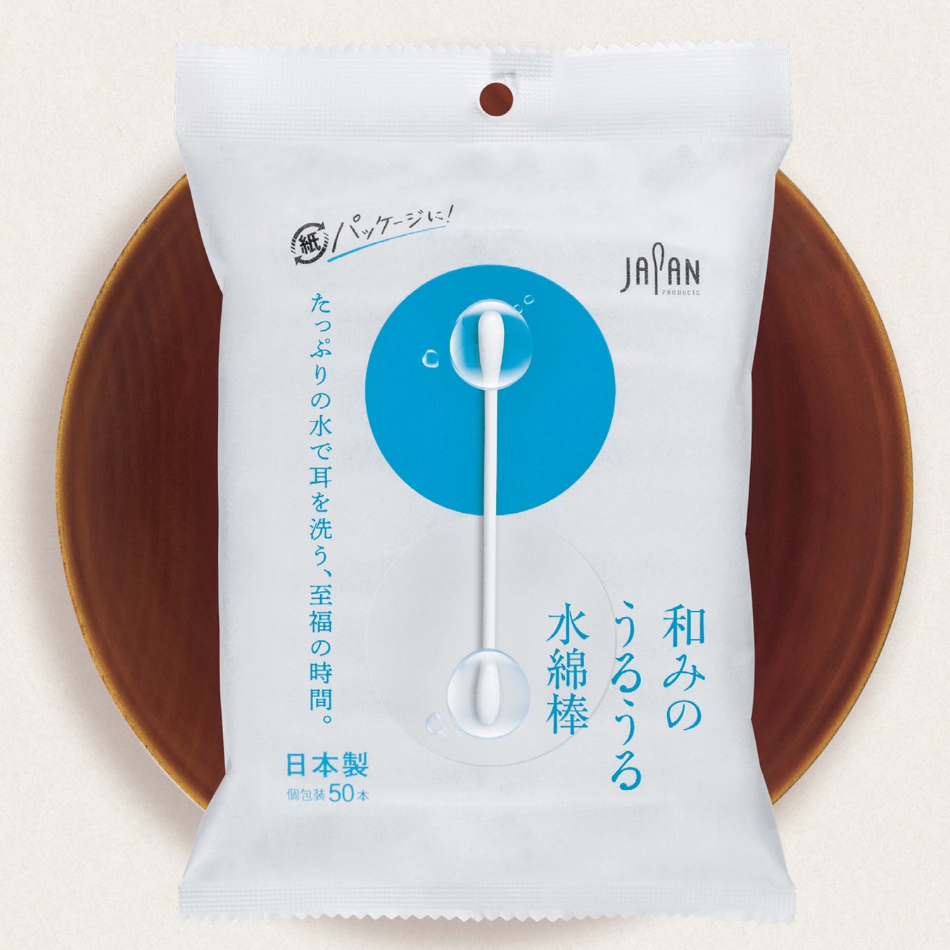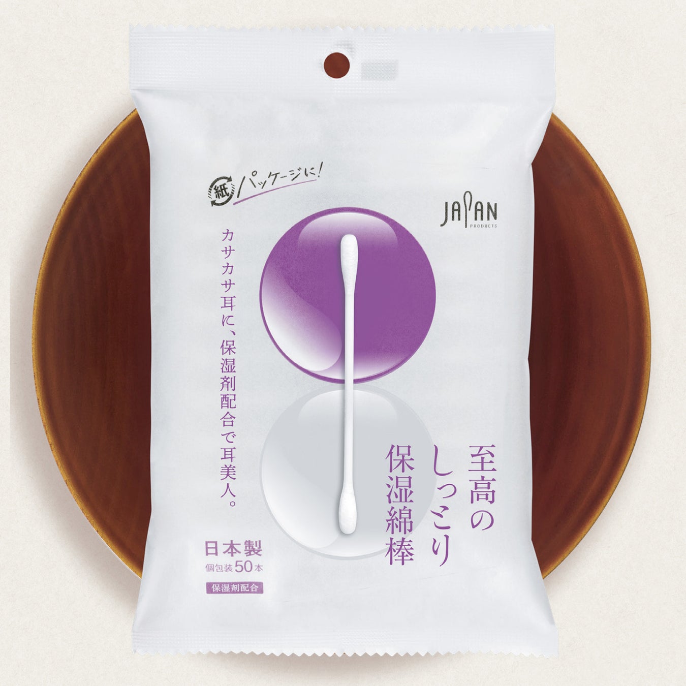 保湿剤配合のウエット綿棒で摩擦抵抗が低いので、敏感肌や耳の乾燥が気になる方の強い味方です。