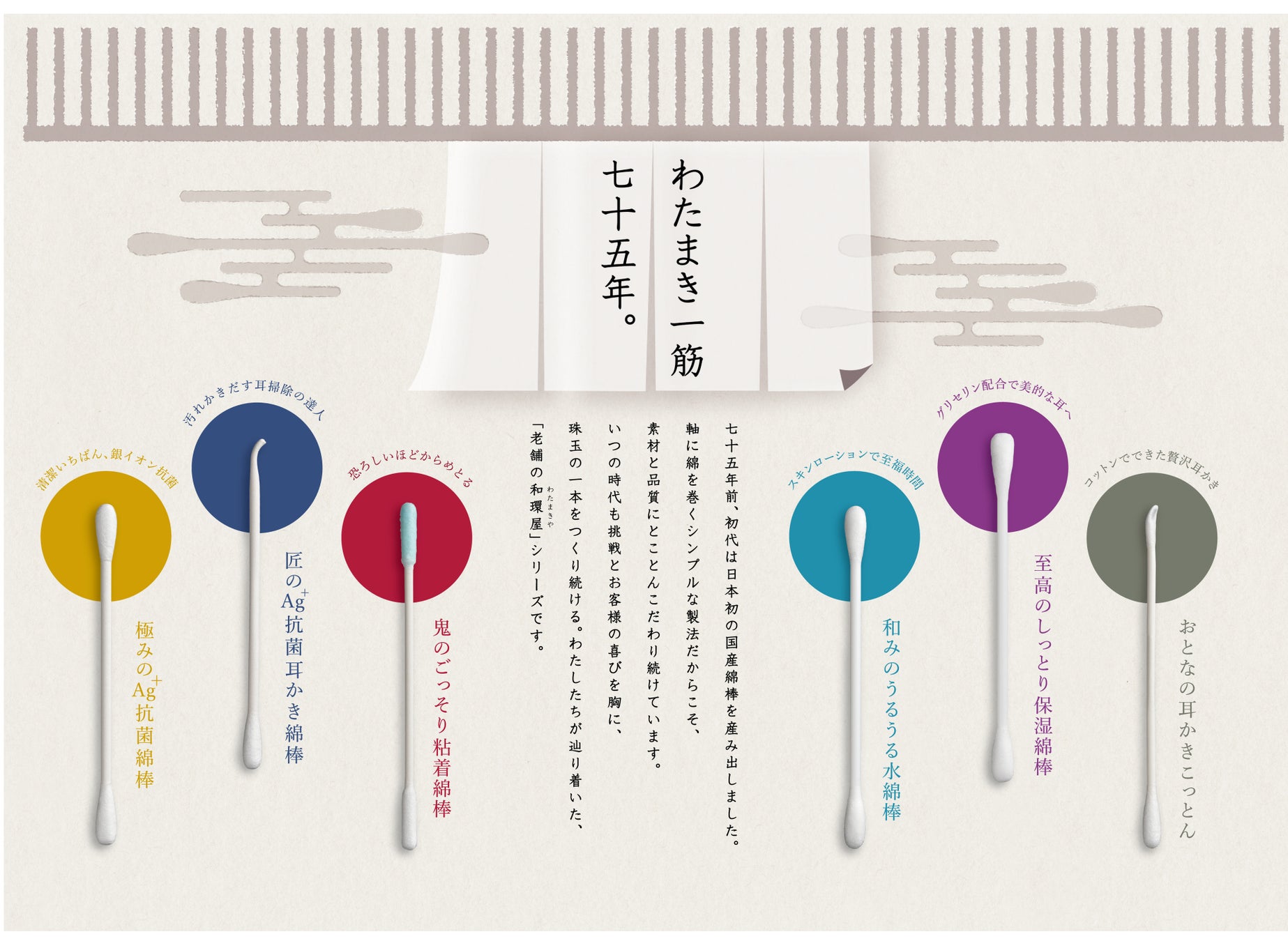 わたまき一筋75年。【日本初】の国産綿棒を産み出した初代のスピリットを現代によみがえらせた【老舗の和環(わたまき)屋】シリーズが販売開始!