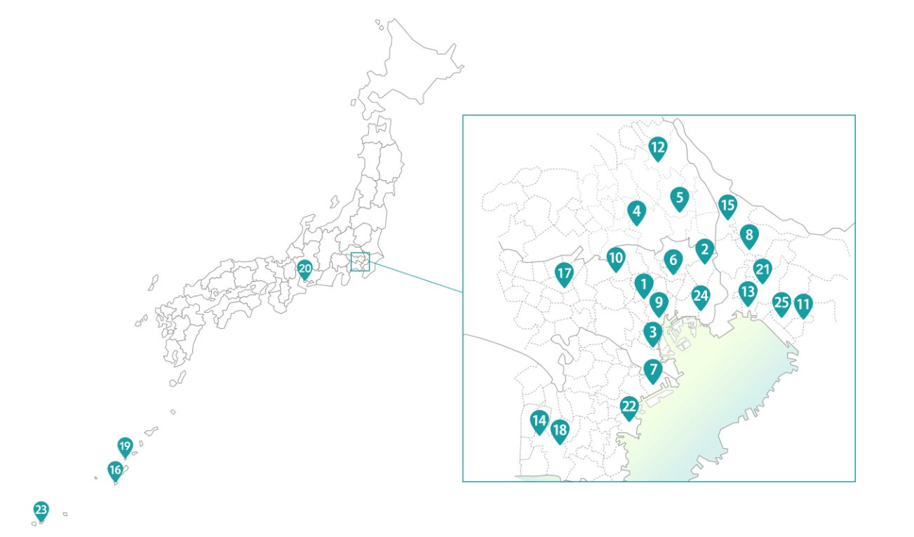 医療法人社団悠翔会は、首都圏近郊に21拠点(東京都8、埼玉県3、神奈川県4、千葉県6)、愛知県1拠点、鹿児島県1拠点、沖縄県2拠点の全25拠点にて、約9,000名の在宅患者さんへ24時間対応の訪問診療を行っています。