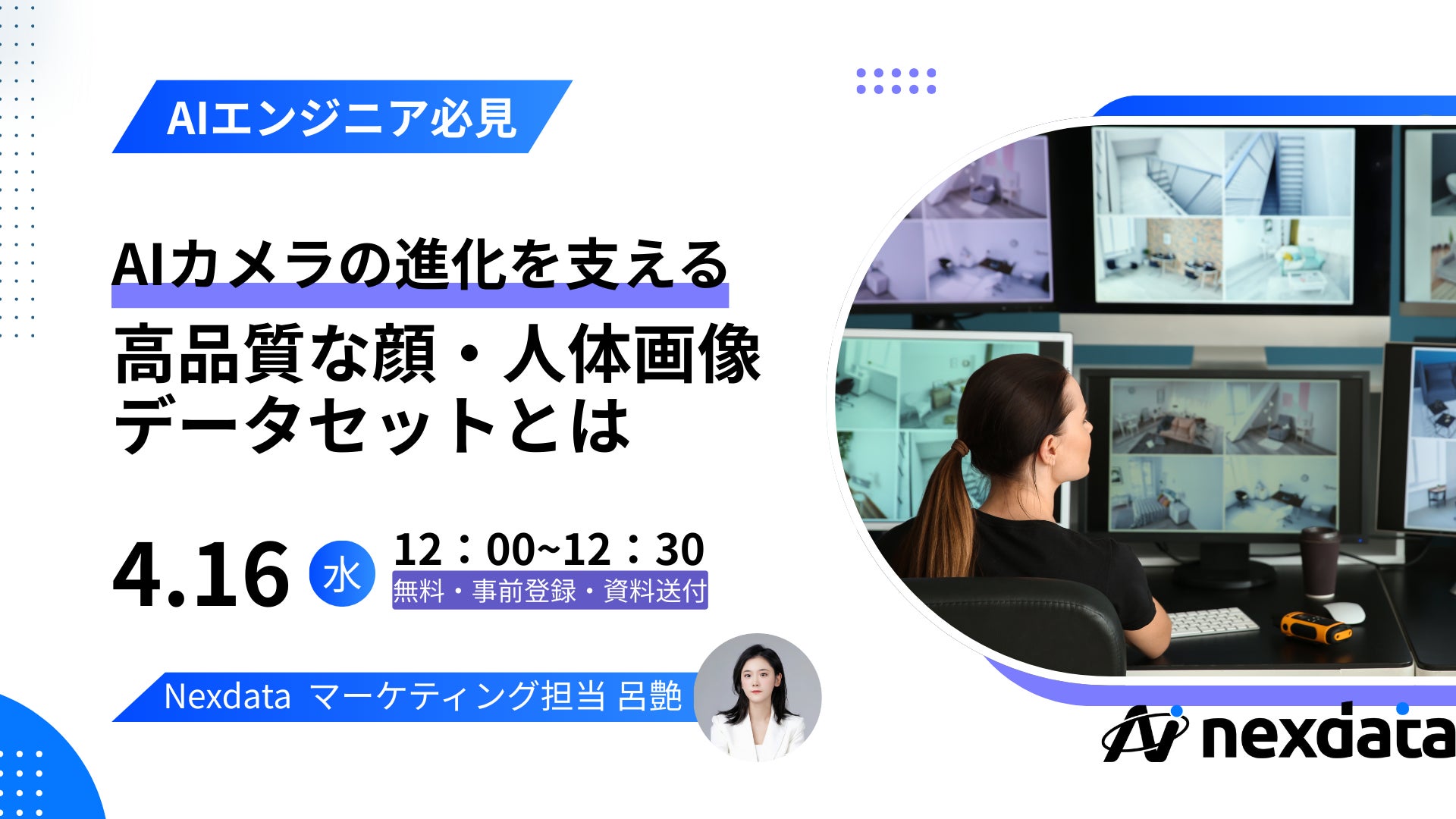 Nexdata(Datatang株式会社新ブランド)は、2025年4月16日(水)12時からAIカメラの進化を支える高品質な顔・人体顔データセットとはをテーマにウェビナーを開催します。