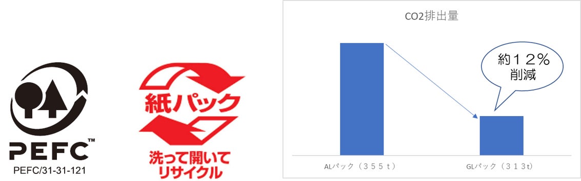 また牛乳パックと同じ紙パック(GLパック)を使用している為、通常のアルミパック(ALパック)と比べ約12%のCO2排出量を抑えられています